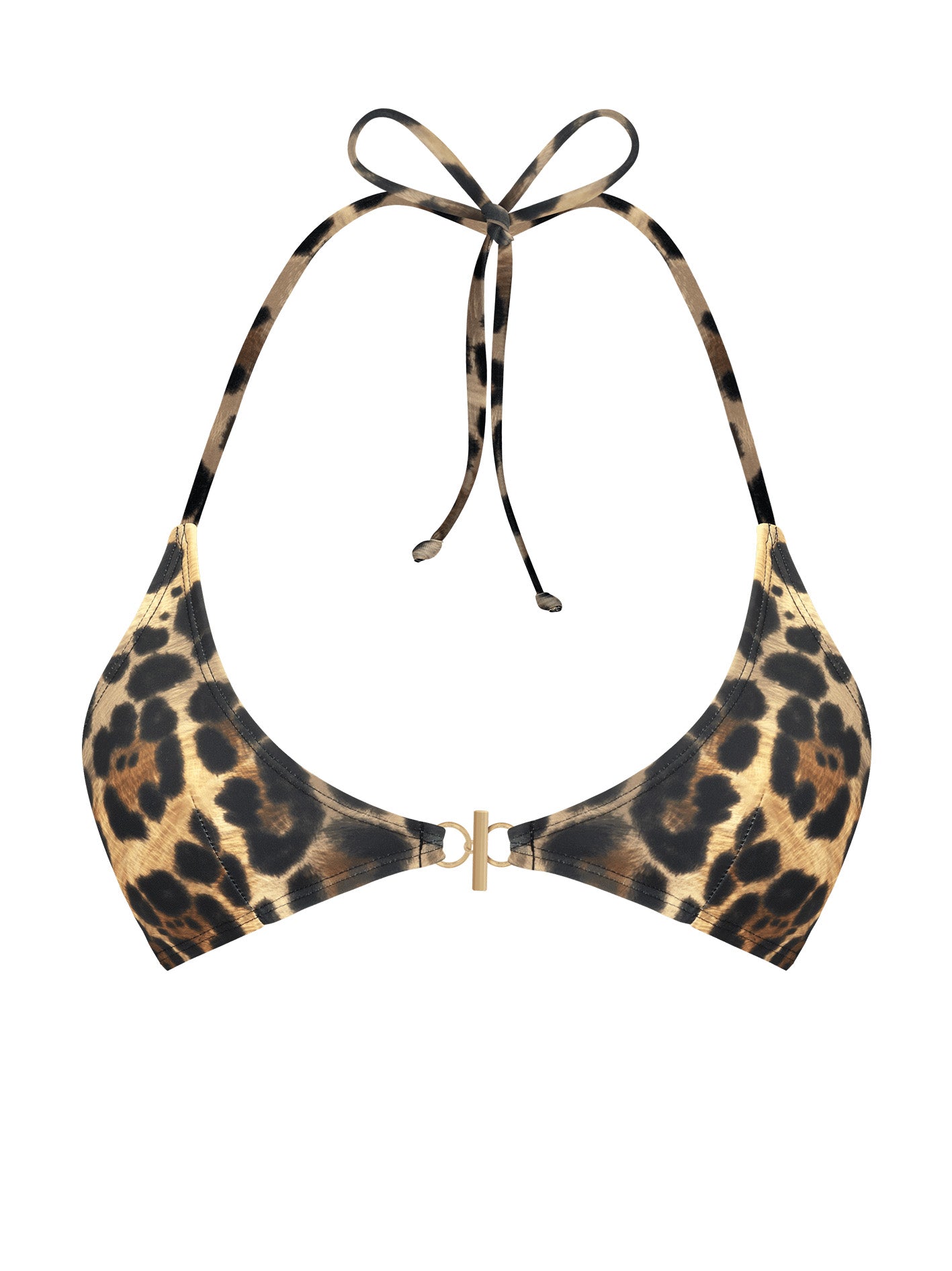 Featuring our bold leopard print and a bold middle ring detail, this top adds a cool edge to your beach look. The convenient back clasp ensures a secure fit, making it perfect for all-day adventures. Pair it effortlessly with a dress or coverup for a seamless transition from sun-soaked days to lively nights.